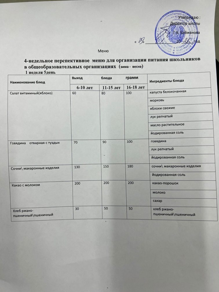 09.01.2026 күнгі ас мәзірі