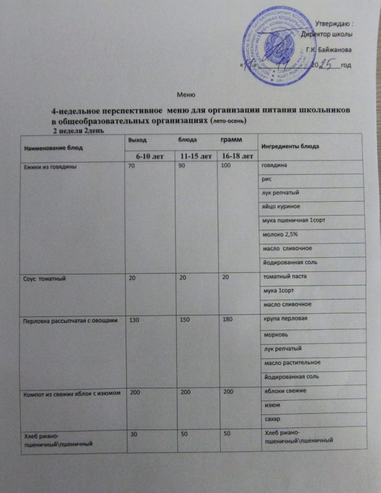 11.11.2025 күнгі ас мәзірі