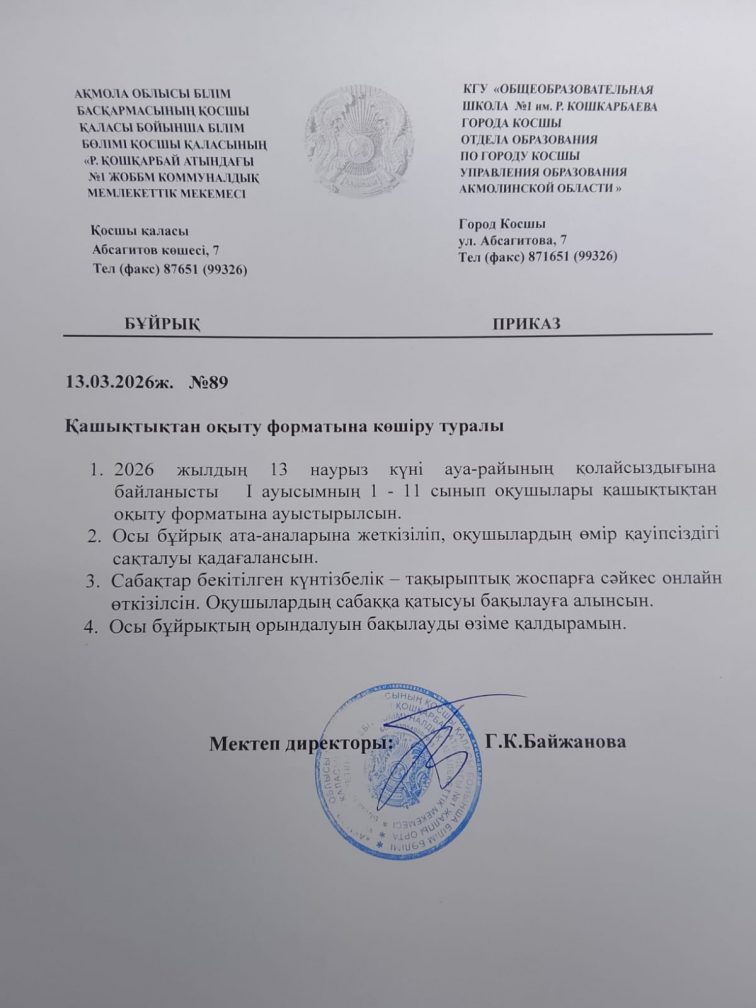 КГУ "Общеобразовательная школа №1 имени Рахымжана Кошкарбаева города Косшы отдела образования по городу Косшы управления образования Акмолинской области"