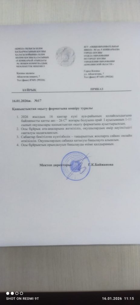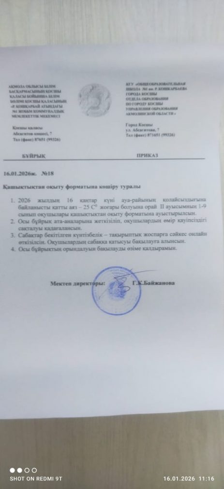 КГУ "Общеобразовательная школа №1 имени Рахымжана Кошкарбаева города Косшы отдела образования по городу Косшы управления образования Акмолинской области"