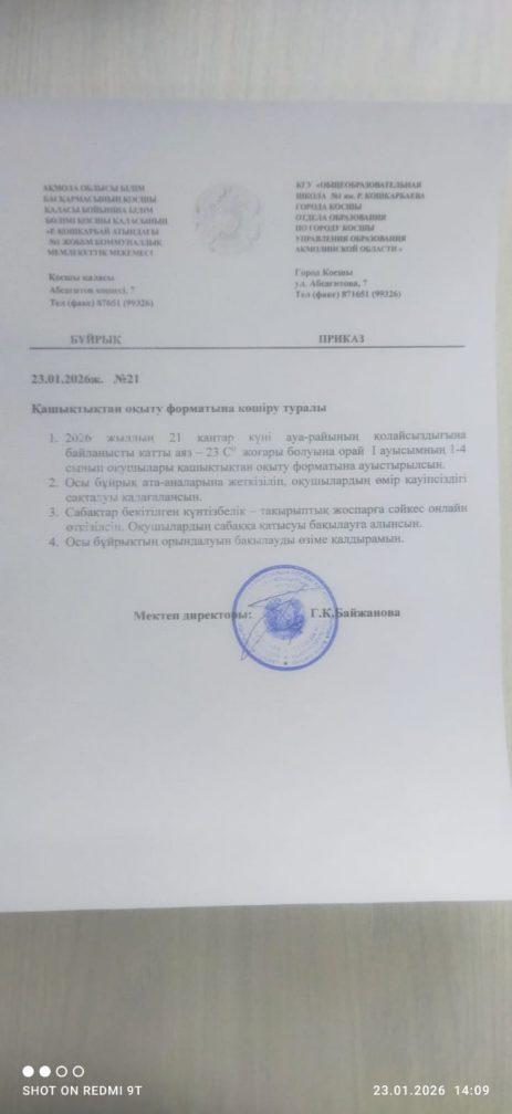 КГУ "Общеобразовательная школа №1 имени Рахымжана Кошкарбаева города Косшы отдела образования по городу Косшы управления образования Акмолинской области"