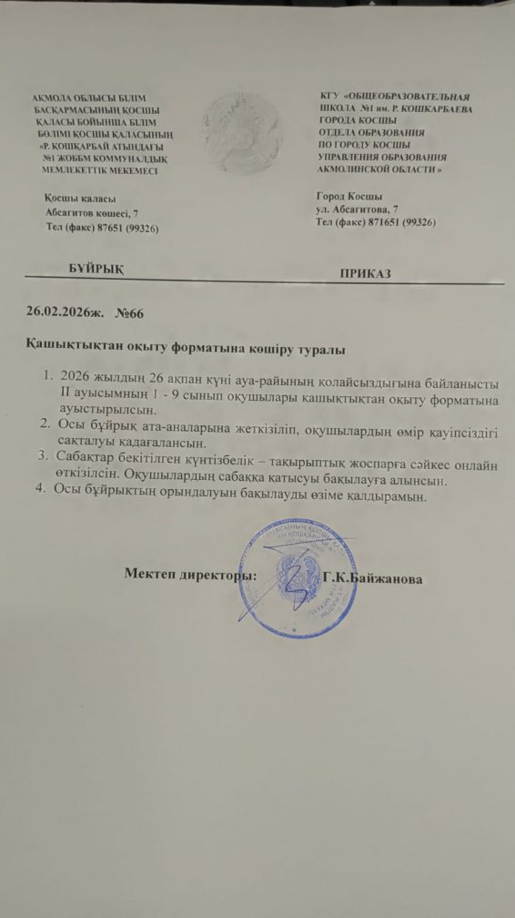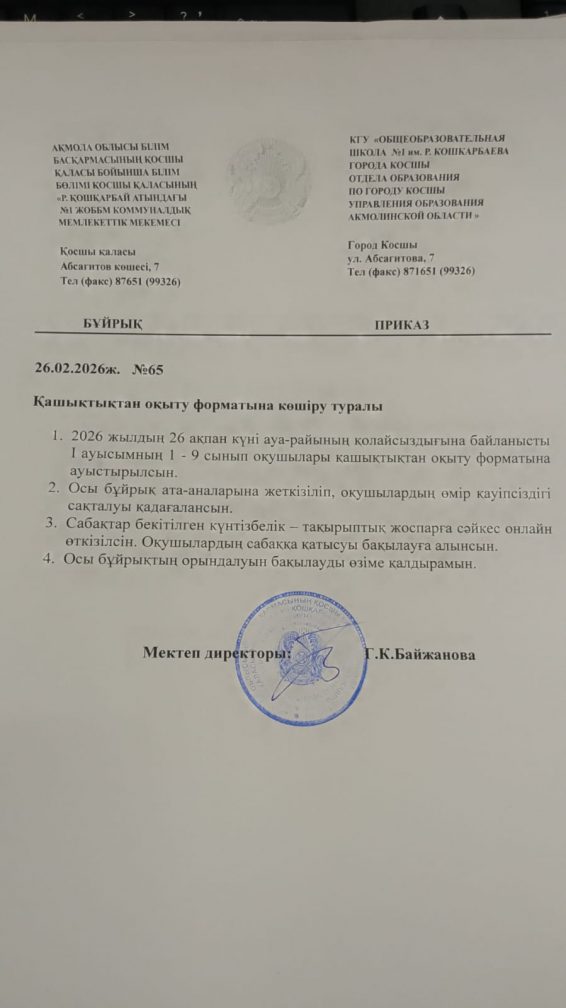 КГУ "Общеобразовательная школа №1 имени Рахымжана Кошкарбаева города Косшы отдела образования по городу Косшы управления образования Акмолинской области"