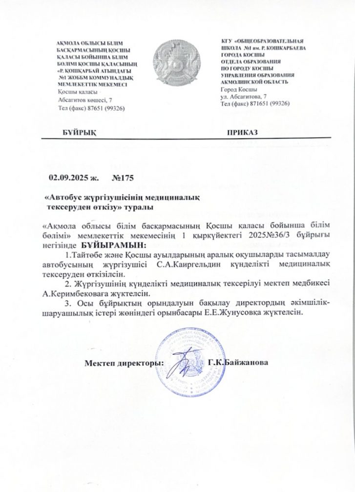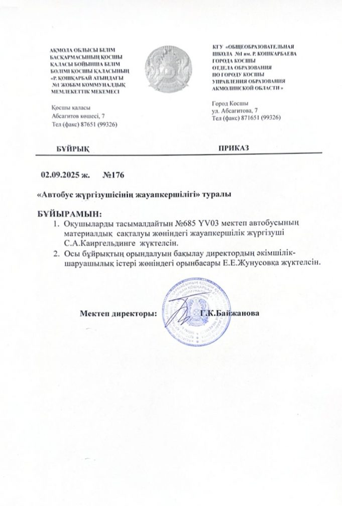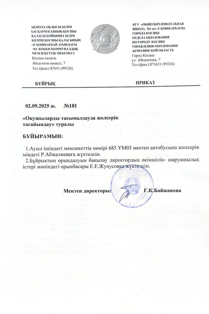 2025-2026 оқу жылындағы оқушыларды тасымалдау туралы