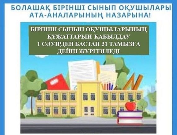 1-сыныпқа оқуға балалар тестілік немесе конкурстық рәсімдерді қолданусыз алты жастан қабылданады. Қабылдау даярлық деңгейіне қарамастан білім беру ұйымының қызмет көрсету аумағында тұратын барлық балалардың қолжетімділігін қамтамасыз ете отырып жүзеге асырылады.