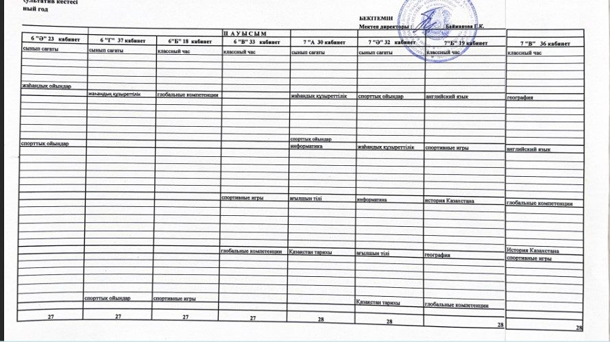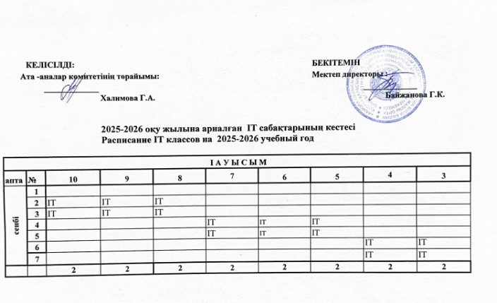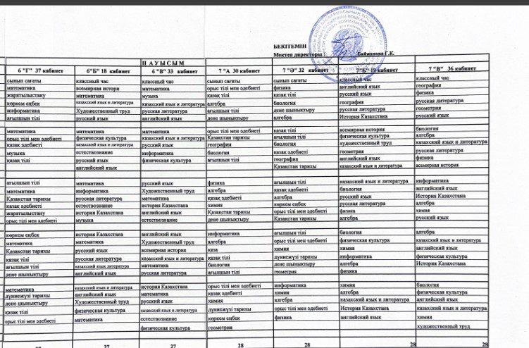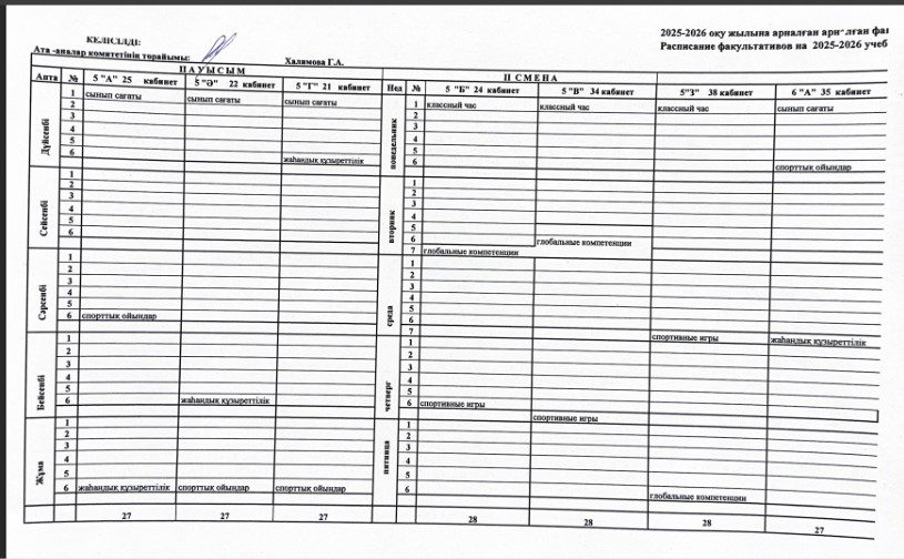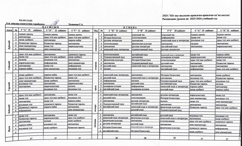 2025-2026 оқу жылына арналған 5-11 сыныптардың сабақ кестесі