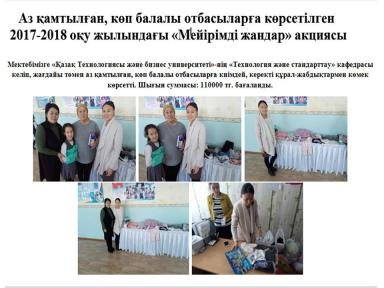 Мақсаты: әлеуметтік көмек алуға құқығы бар аз қамтылған, көп балалы, тұрмысы қолайсыз отбасылардың балаларына, жетім...