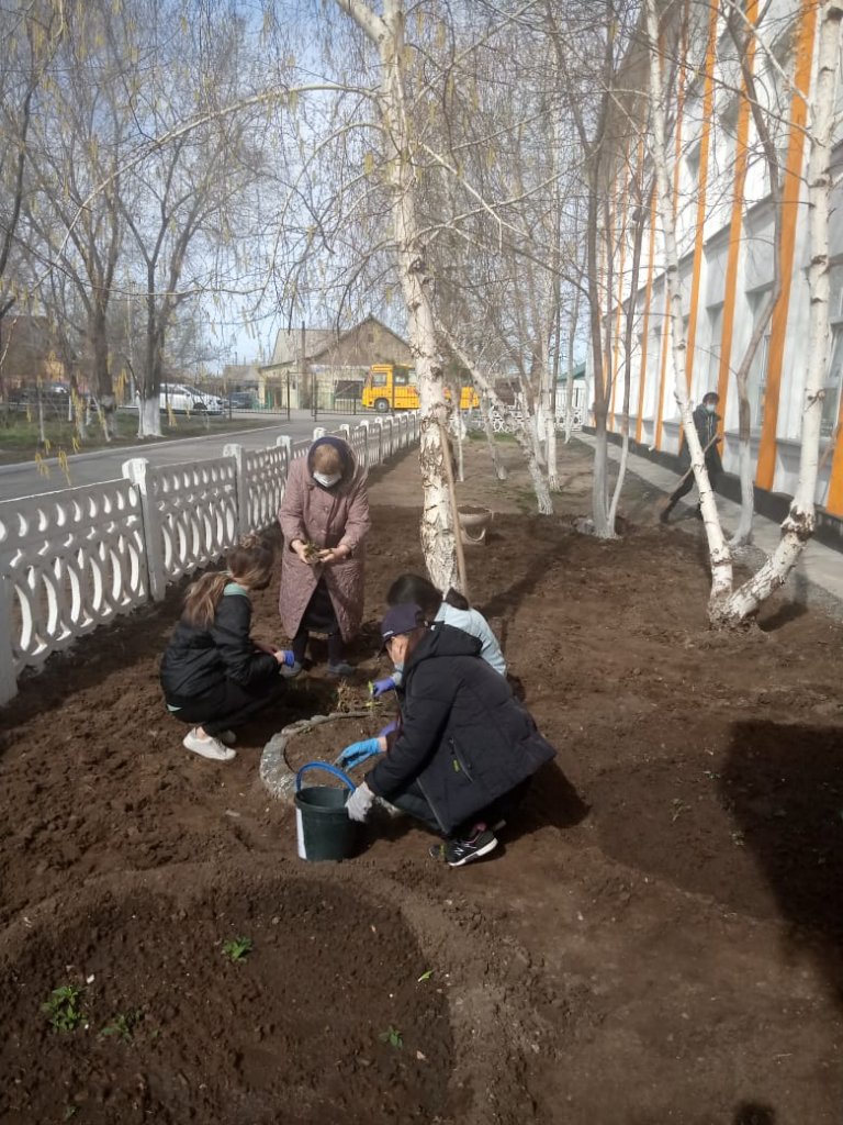 Көктем күшіне еніп, ағаштар мен барлық тіршілік иелері ұйқыдан оянады. Алғашқы жылы күндермен көктемгі жұмыстар да басталады. Көктемгі жұмыстар-ағаштарды зиянды жәндіктерден қорғау және өңдеу, ауланы, көшелерді қоқыстан тазарту.Ағаштар мен гүлдер отырғызу...