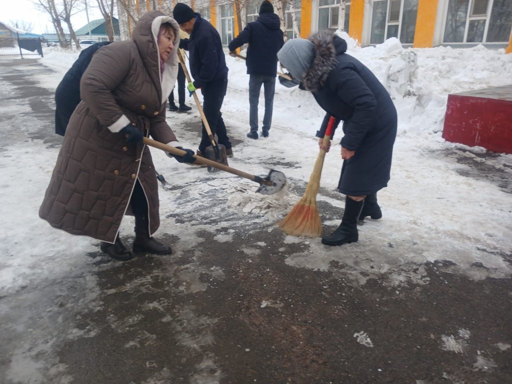 Осыған орай, бүгін мектебіміздің ауласында қар тазалау жұмыстары жүргізілді. Мектебіміздің кіші қызметкерлері ұйымшылдық танытып, қар күреу, мұз жару жұмыстарына белсене қатысты.
