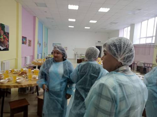Тамақтану блогының санитарлық-техникалық жағдайы санитарлық талаптарды қанағаттандырады. Айына 1 рет мониторнингтік коммиссия тексеріс жүргізіп отырады. Күн сайын ғимарат жиналып, сенбі күндері санитарлық күн болады. Тағамдарды сақтау да санитарлық нормаларға сәйкес жүзеге асырылады. Қауіпсіздік техникасы ережелері сақталады.