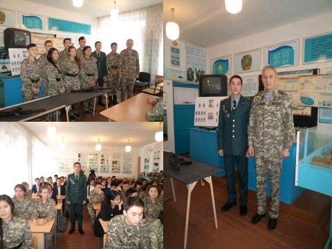 Выбор профессии – сложное жизненное решение. Помочь школьникам определиться с тем, куда пойти учиться, - первоочередная задача учителей и родителей, ведь от этого зависит будущее ребенка. Особенно это касается учеников старших классов. Времени на серьезный выбор остается все меньше. Поэтому папы и мамы проводят с детьми беседы, а в школах проходят мероприятия по профориентации для старшеклассников. Одна из прекрасных возможностей для мальчишек старших классов – выбрать себе военную профессию, посвятить жизнь защите родины. Надо сказать, что для подготовки к поступлению ребят в военные учебные заведения нашей школе проводятся различные мероприятия, уроки мужества и встречи с бывшими учениками школы окончившими военные училища. Вот и сегодня состоялось одно мероприятие , целью которого было привлечь внимание мальчишек к офицерской профессии. Проведена встреча. С лейтенантом Алмазом Абакановым .Нашим выпускником и выпускником Алма-атинского «Военного института радиоэлектроники»Встреча проведена с учащимися 10-11 классов. Алмас ребятам рассказали о военных специальностях, которые можно освоить, обучаясь на таких факультетах, как общевойсковой, связи и автоматизированных систем управления, противовоздушной обороны, военной разведки, авиационный, внутренних войск, ракетных войск и артиллерии и ракетно-артиллерийского вооружения. Причем специальности, полученные на этих факультетах, могут быть применены и в гражданской сфере Ребята узнали также о том, что выпускники Военной института вместе с дипломом о высшем образовании получают и воинское звание «лейтенант».