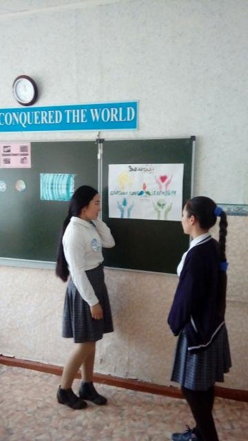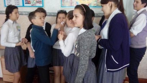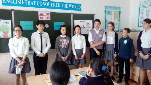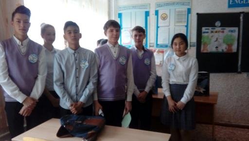 На нем присутствовали классный руководитель 8 - Б класса Адырбаева Г.О., учитель истории Кожакова Ж.М. Ребята очень хорошо подготовились к игре: оформили плакаты, эмблемы команд, активно участвовали,